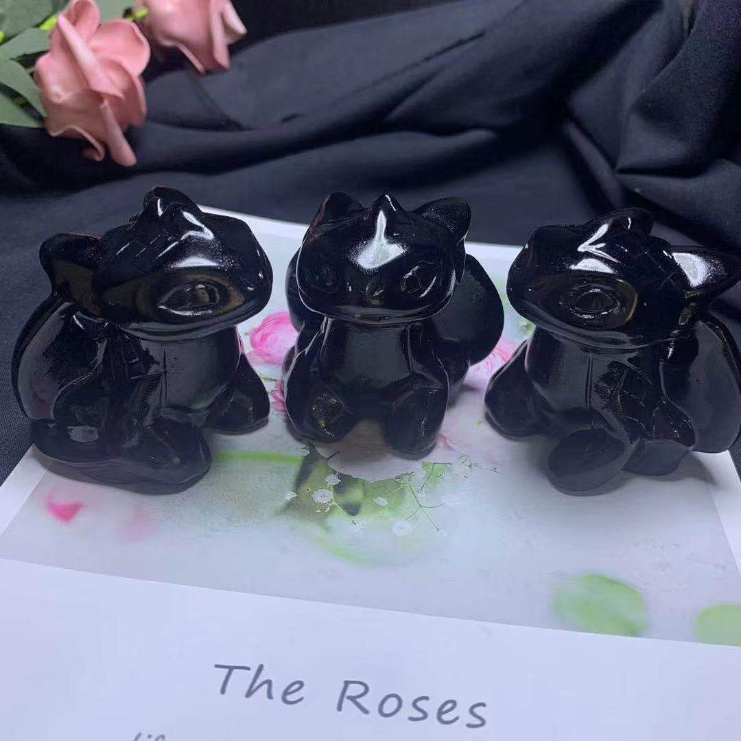 Healing Crystal Stone Human Reiki Toothless Figurine Statue Sculptures Fly Dragon Skull Crystal Halloween (Obsidian)